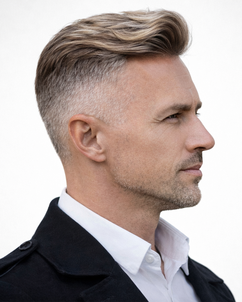 KR005 Classic Side Part Men’s Toupee – Natural Hairline Lace Front | Pre-Cut Breathable Hair System