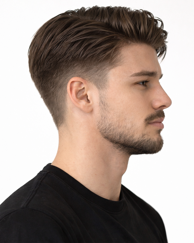 KR009 Men’s Quiff Hair System – Slick Back Pompadour Style | Lace Front Natural Hairline Pre-Cut Toupee